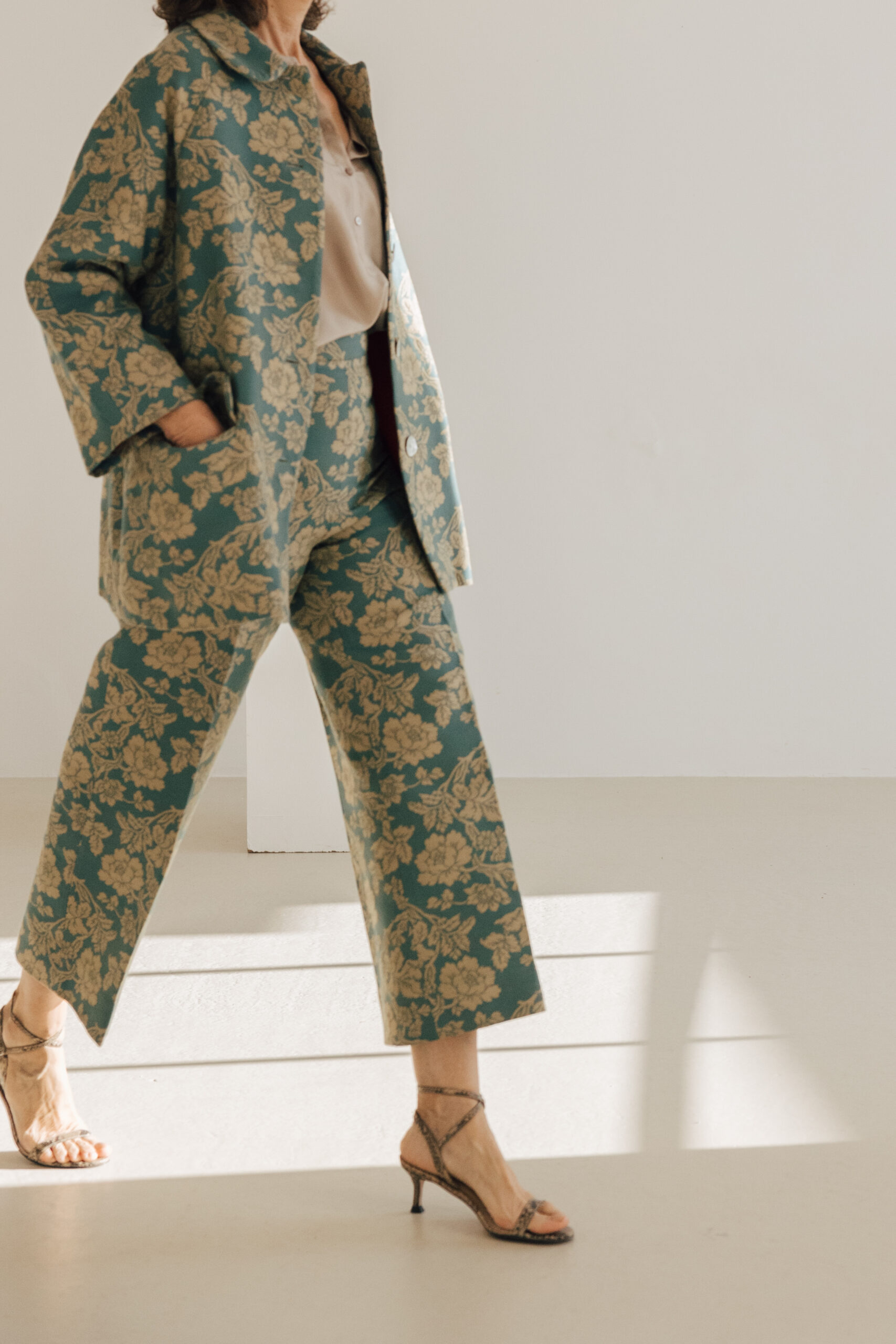 Pantalón tobillero con cintura alta, corte recto y ancho de pierna.